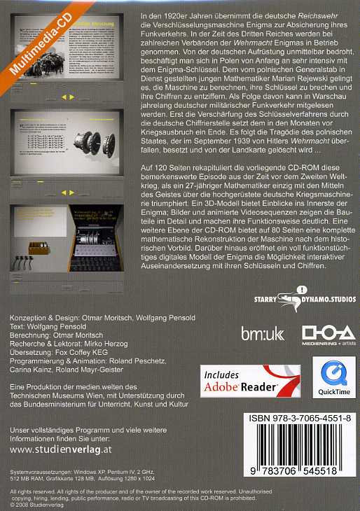 Die CD enthaelt ein interaktives virtuelles Modell der Turingmaschine, mit dem ich mich noch in spielender Weise befassen werde. Designt wurde die CD von Roland Peschetz, Carina Kainz, Roland Mayr Geister. Recherchiert und lektoriert wurde von Mirko Herzog.