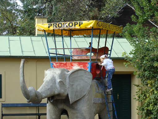 Eine Real Intervention stiehlt Steinbrener/ Dempf die Show. Das Suedamerika Gehege wird umgebaut, um Puma & Co. annaehernd artgerechten Auslauf zu bieten. Da wird gegraben, gebaggert, das Erdreich umgekrempelt, um schlussendlich als gestalteter Landschaftsgarten mit Dschungelimpressionen neu zu erstehen. Deutlicher laesst sich der Eingriff in die Natur nicht darstellen. Die Baumassnahmen weisen auf das Dilemma der Zoogestaltung. Viele Kaefige sind ueberaltet, wahrscheinlich noch dazu unter Denkmalschutz. Solche Kaefighaltung kann man den Tieren nach den neueren Erkenntnissen nicht mehr zumuten. So wurden bereits in der Zeit von Pechlarner Gehege und Rueckzugsplaetze der Tiere veraendert und ihrem Artverhalten angepasst. Ich war vor etwa 20 Jahren das letztemal im Tiergarten und habe damals ein deutlich tristes Poem verfasst.